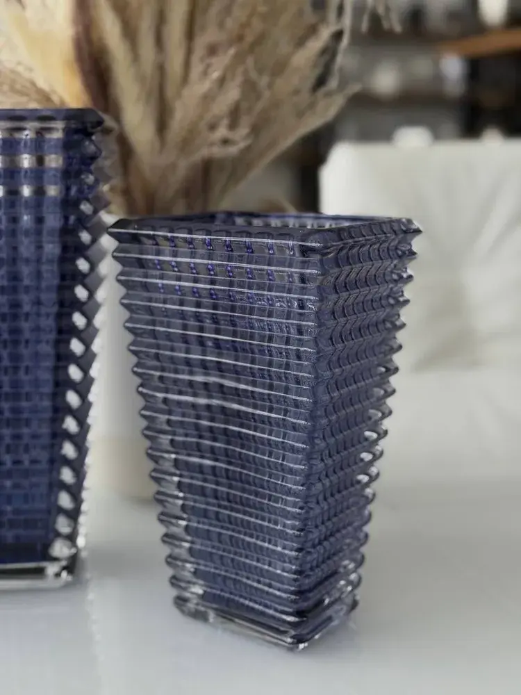 Стеклянная ваза выполнена из прочного материала, который сохраняет прозрачность и блеск даже при длительном использовании. Её насыщенный синий оттенок идеально впишется в современные интерьеры, добавляя натуральной свежести или контрастного акцента.