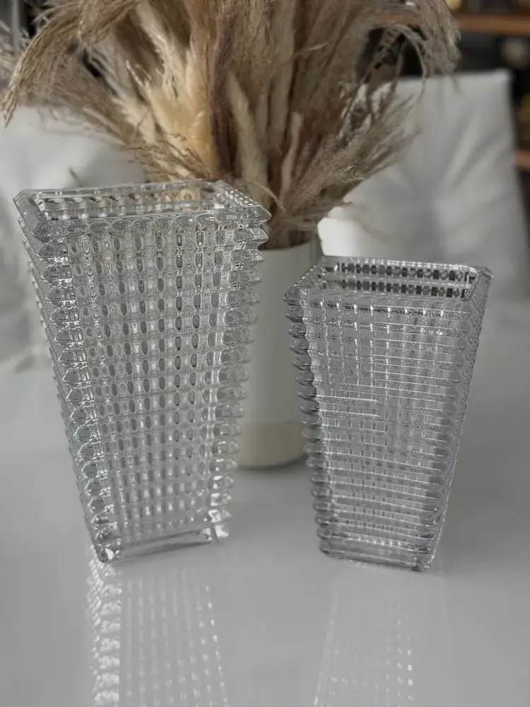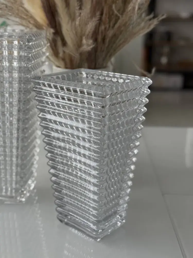 Стеклянная ваза выполнена из прочного материала, который сохраняет прозрачность и блеск даже при длительном использовании. Её нейтральный оттенок идеально впишется в современные интерьеры, добавляя натуральной свежести или контрастного акцента.